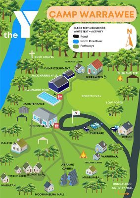 The spacious grounds of Camp Warrawee can be broken down into two different zones: our main Warrawee grounds with convenient access to our halls and activity areas; and our Bundalong grounds with easy access to our Meltdown Challenge.